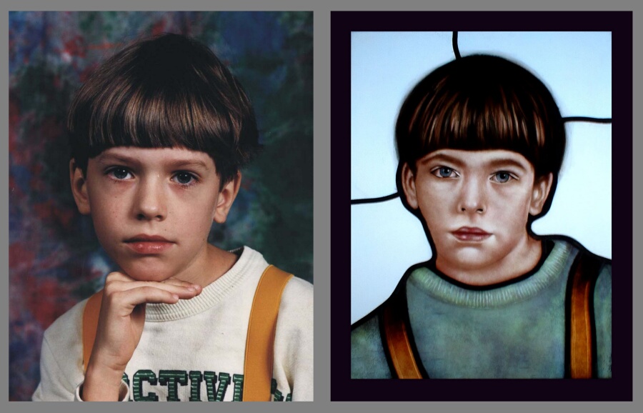 portret- szkło witrażowe z Jasła malowane i wypalane |