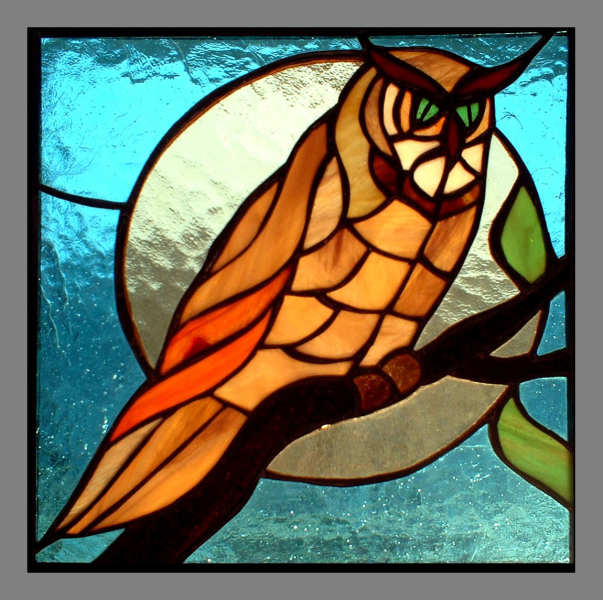 sowa- szkło opalowe, szkło ornamentowe- cathedral |