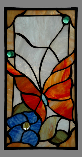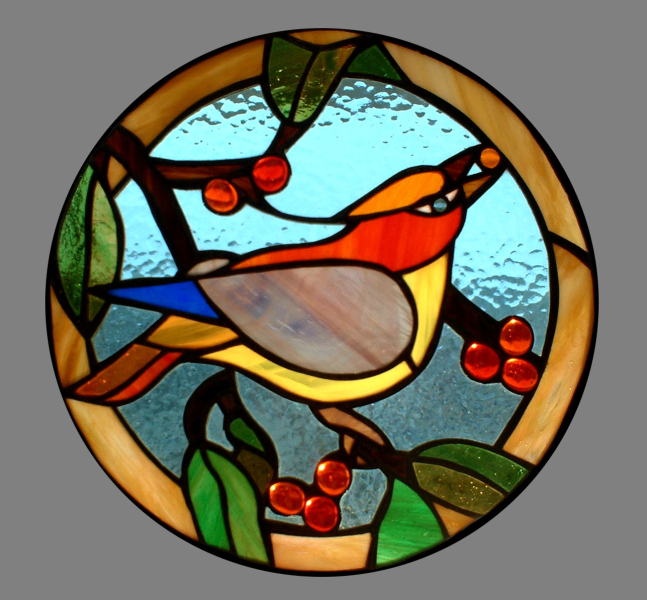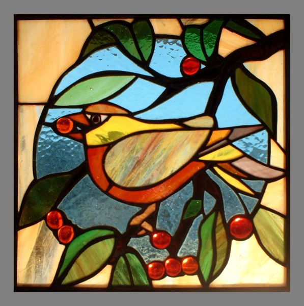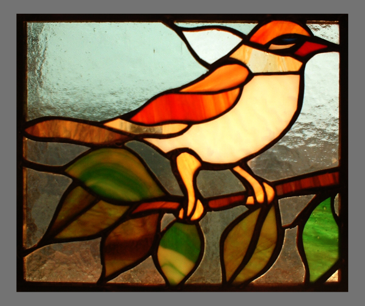 ptaszek- szkło opalowe, szkło ornamentowe- cathedral |
