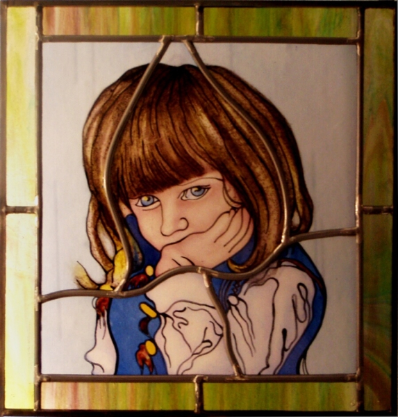 Józio Feldman wg pasteli St. Wyspiańskiego szkło opalowe, szkło witrażowe z Jasła malowane i wypalane |